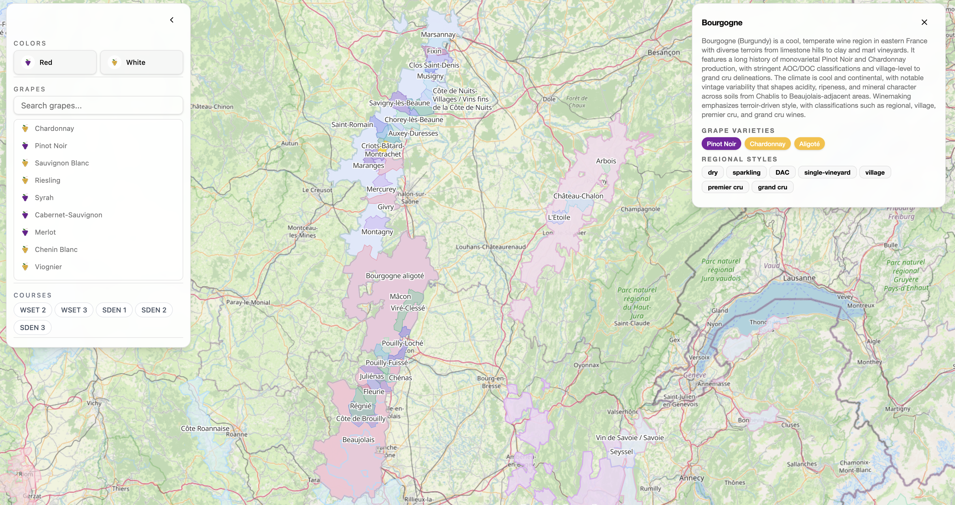 Navigate appellations, discover terroirs, and understand wine geography with an interactive map built for professionals, students, and enthusiasts.